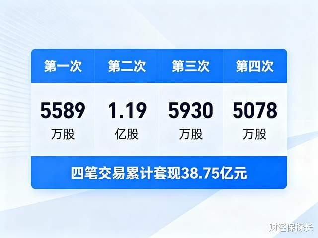 从2021年第一次减持开始,中国人寿表现的就很精明,分四次离场,每次都踩在相对高位。5589万股、1.19亿股、5930万股,最后这笔5078万股,四笔交易累计套现38.75亿元。